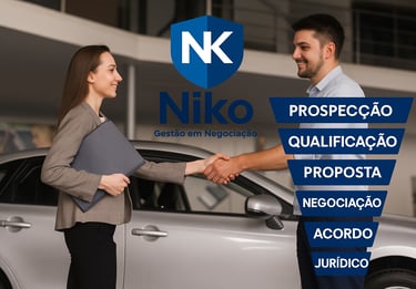 A NIKO Gestão & Negociação atua como representante legal do cliente em negociações diretas com bancos e financeiras. Nosso objetivo é reduzir juros abusivos, revisar contratos e impedir que o veículo seja apreendido ou em alguns casos que não vá a leilão.